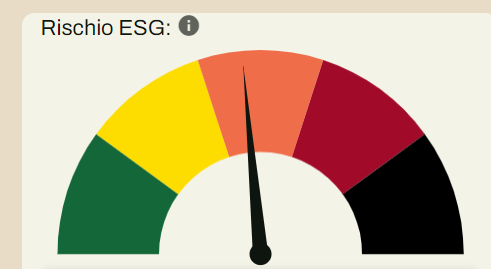 Il tachimetro mostra un rischio ESG intermedio per questo portafoglio…senza infamia nè lode!