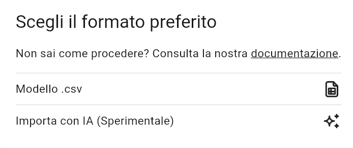 Questo CSV va caricato tramite import con IA.